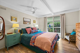 Warmth, charm and creativity characterise this absolutely beautiful home. Step inside and feel the love, of a calm and intentional interior that's truly one of a kind. Being surrounded and softened by a garden allotment of shady trees and water-wise beds adds to the appeal. Inside, generous spaces and big picture windows bring a feeling of light and space. Exposed beams and leadlight glass are lovely. The updated bathrooms and kitchen compliment the home's design. A mix of ceiling fans and split system heating and cooling is kept efficient thanks to banks of solar panels on the roof.